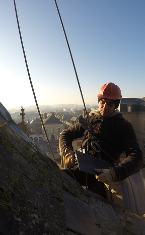 Avec une formation dans l’entretien et la réparation des bâtiments et ouvrages d’art et un examen de travaux sur cordes en poche, j’ai appris mon métier de « technicien cordiste » sur le terrain en faisant mon tour de France des entreprises du secteur.